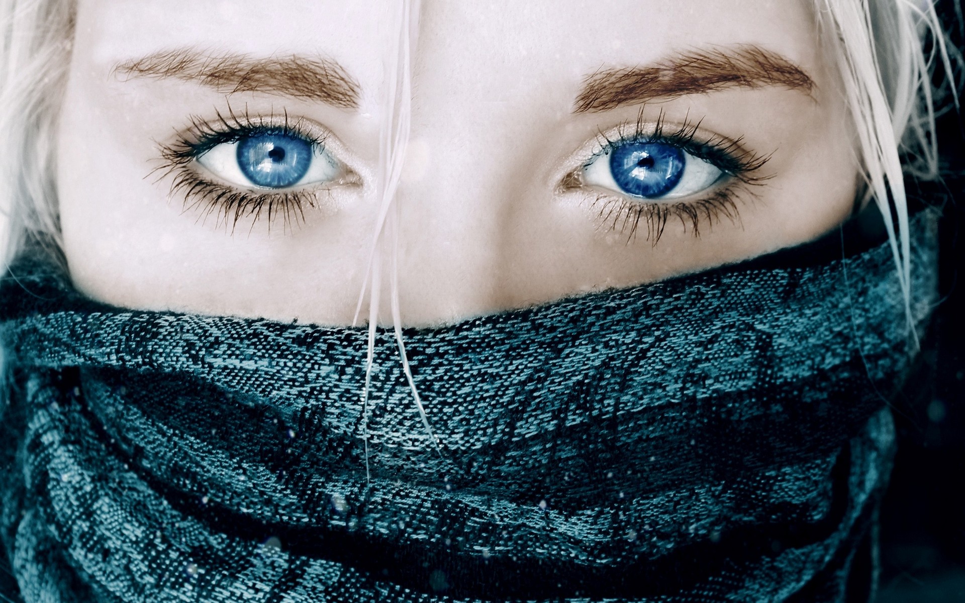 Скачать обои для рабочего стола Голубые глаза и шарф и фото