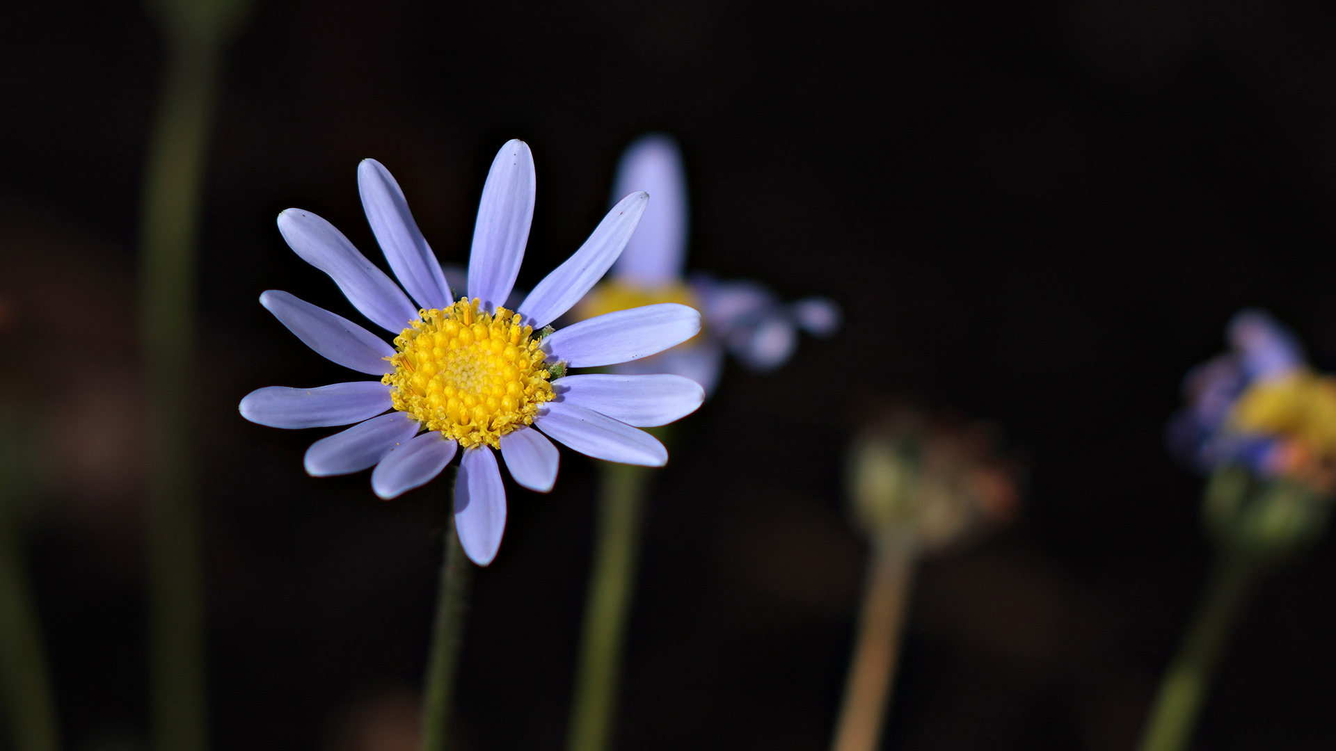 Скачать обои для рабочего стола Голубые лепестки, желтая срединка и фото