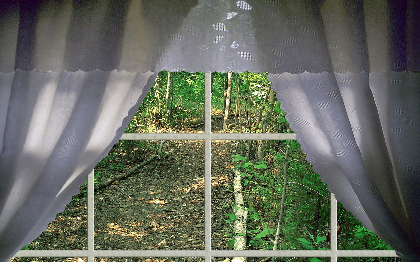 Скачать обои для рабочего стола Голубые шторы на окне и фото