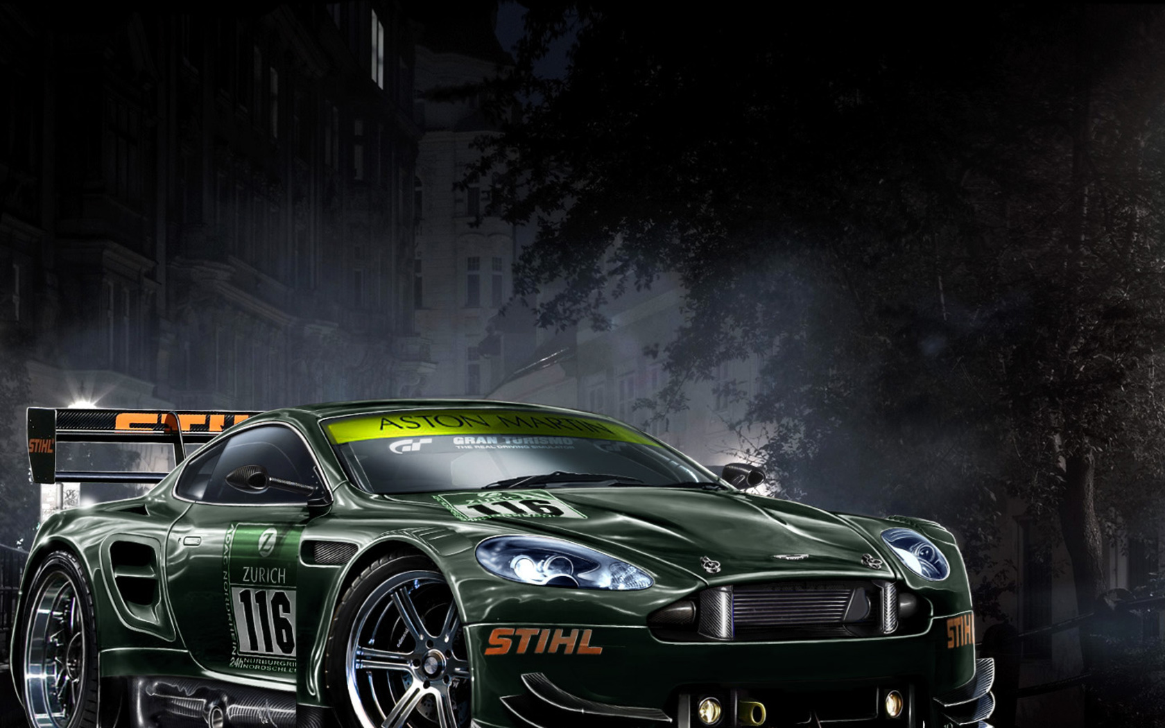 Скачать обои для рабочего стола Гоночный Aston Martin в городе и фото