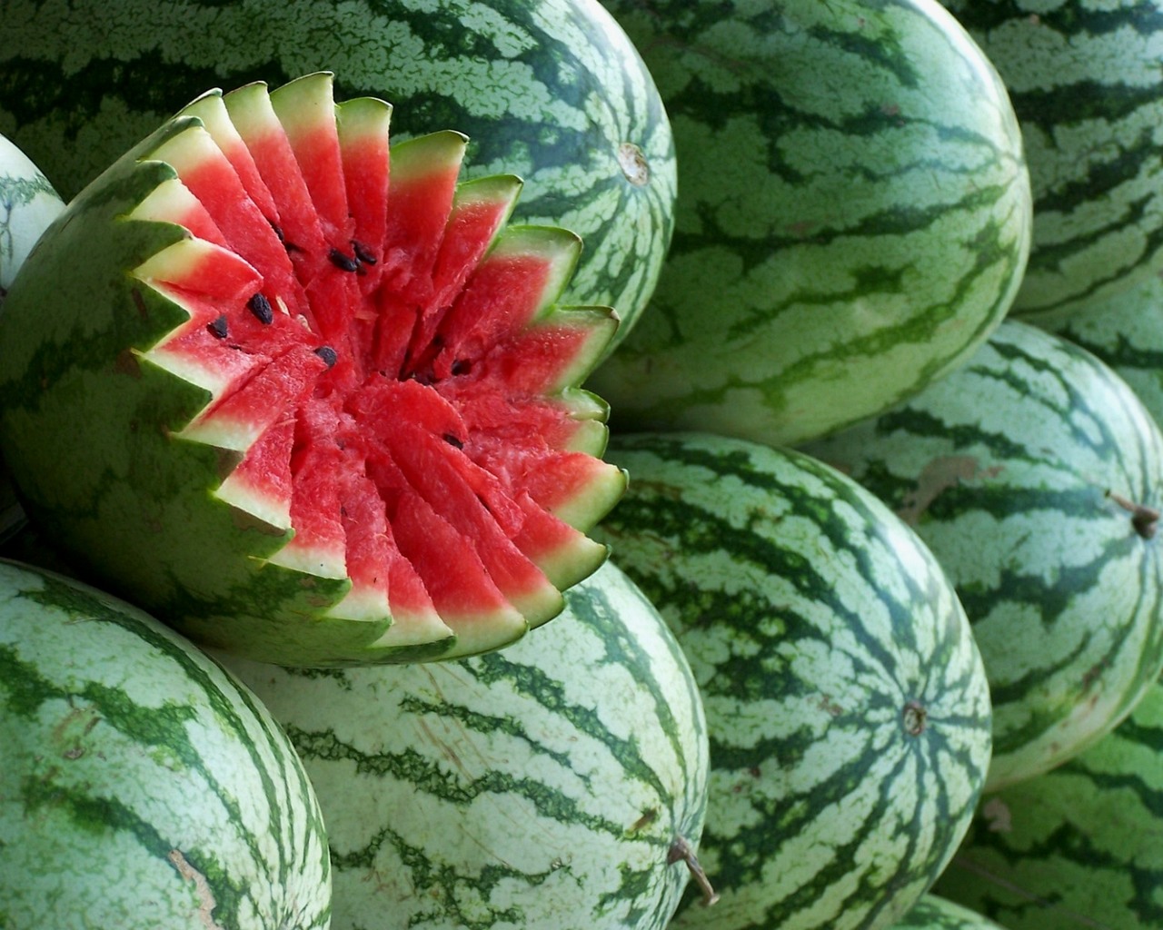 Скачать обои для рабочего стола Гора арбузов и один вырезаный и фото