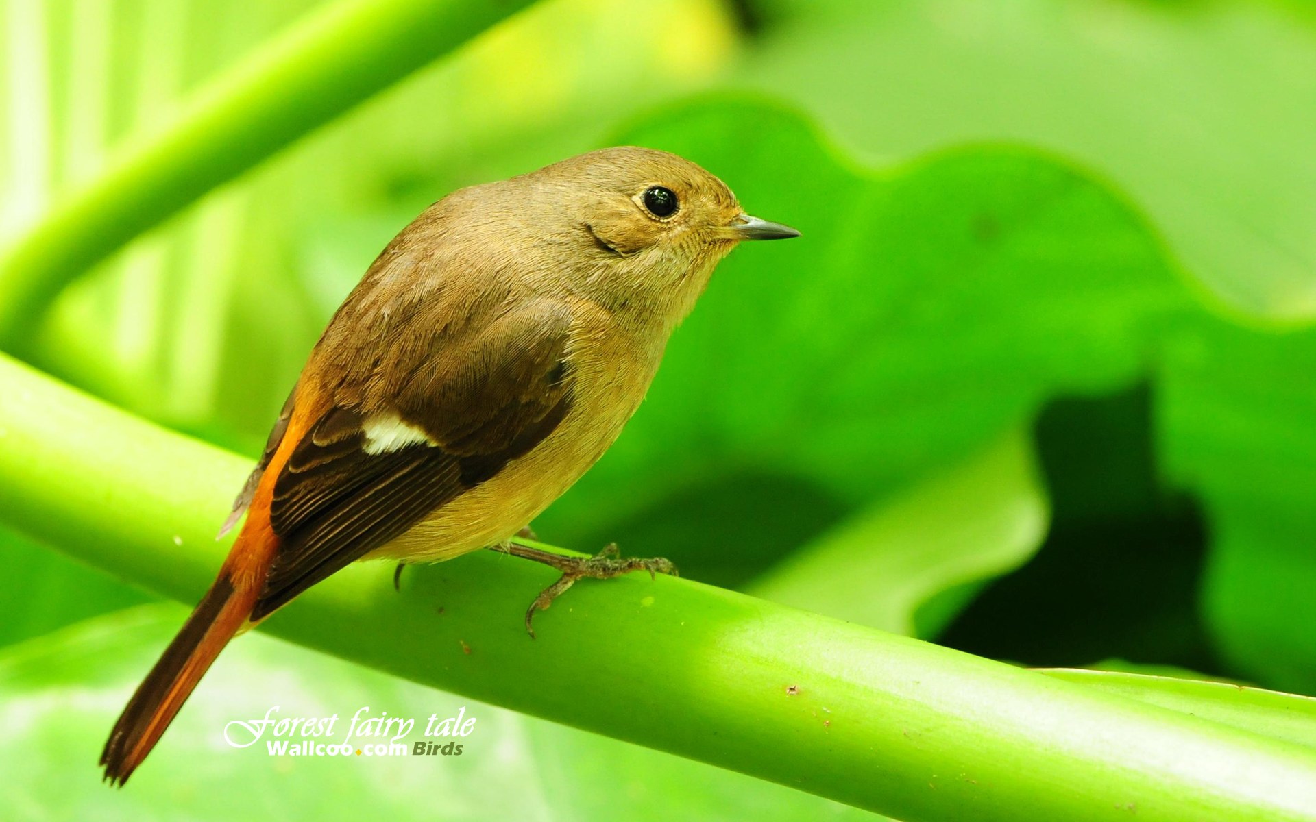 Обои Gorgeous birds Female Daurian Redstart in Greeny