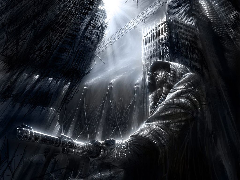 Скачать обои для рабочего стола Город будущего во мраке и фото