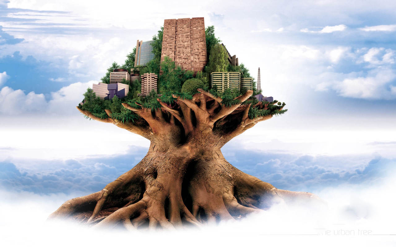 Скачать обои для рабочего стола Город на верхушке дерева и фото