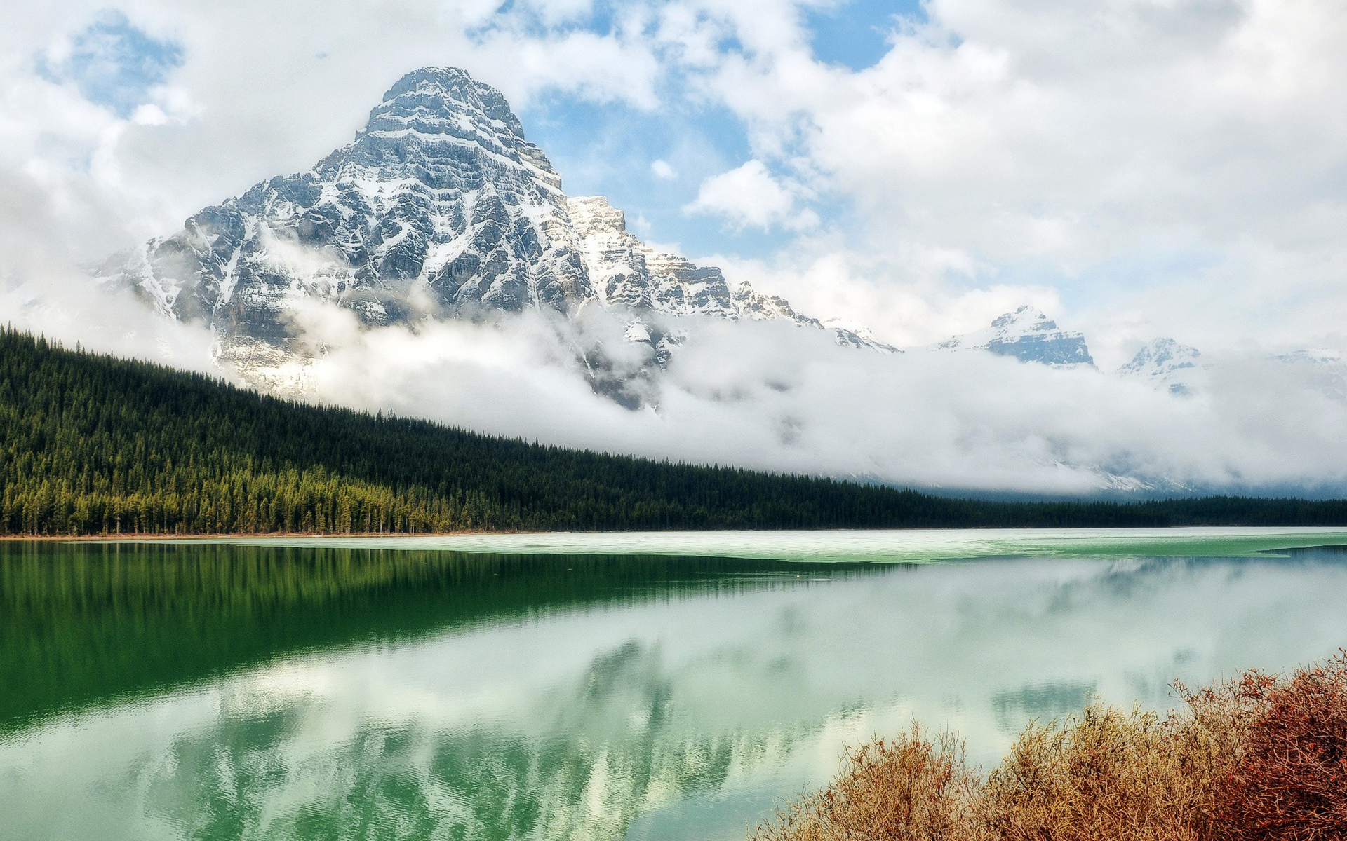 Скачать обои для рабочего стола Горы на фоне озера и фото