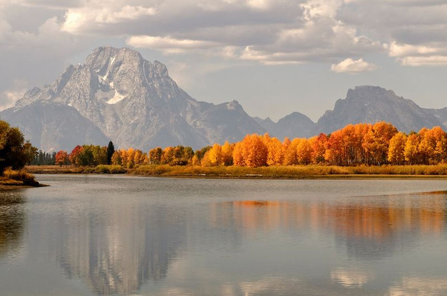 Скачать обои для рабочего стола Горы, озеро и осень и фото