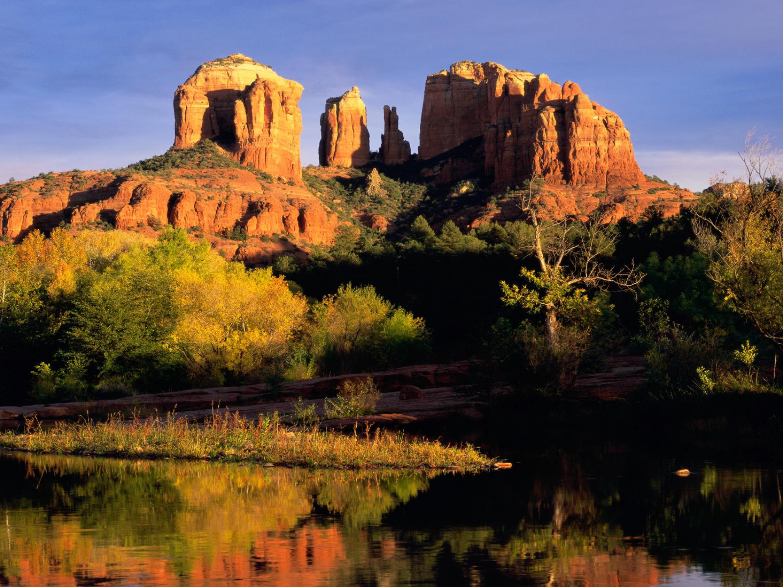 Скачать обои для рабочего стола Горы среди реки и фото