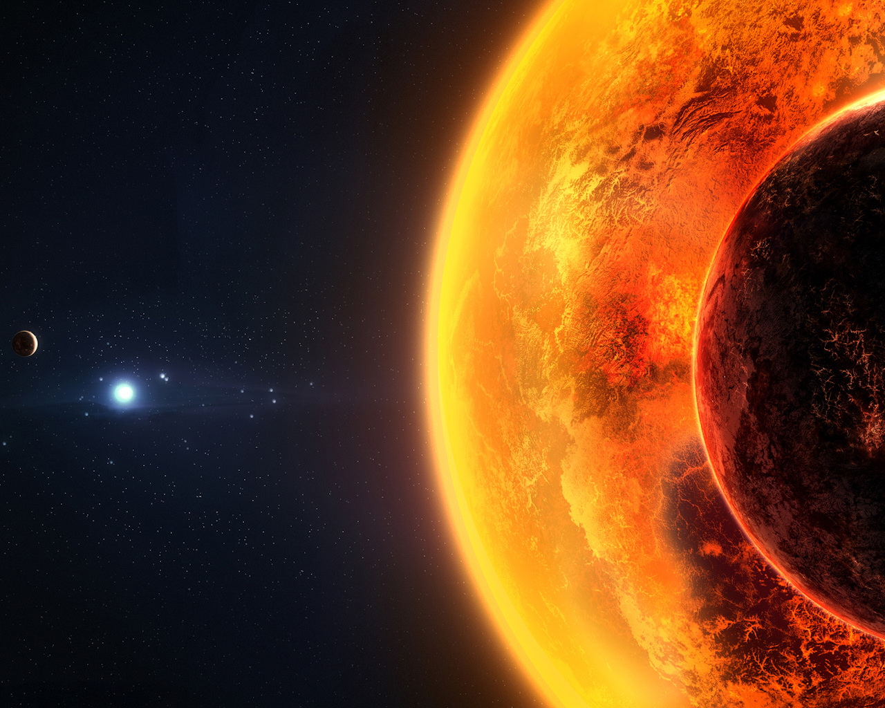 Похожие обои на Горящая планета и солнце: