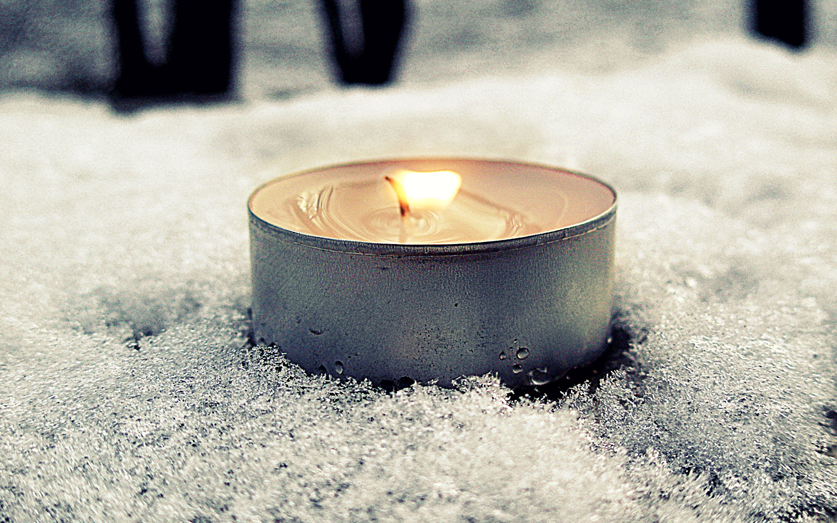 Скачать обои для рабочего стола Горящая свеча на снегу и фото