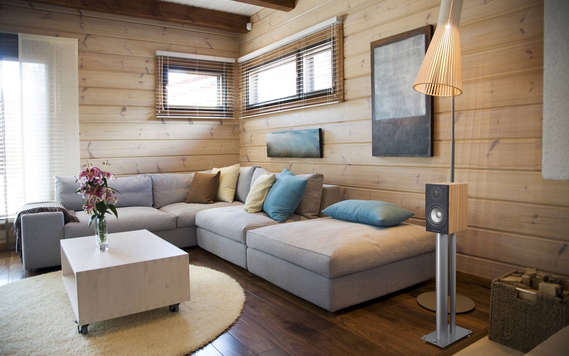 Скачать обои для рабочего стола Гостиная с дeревянными стенами и фото