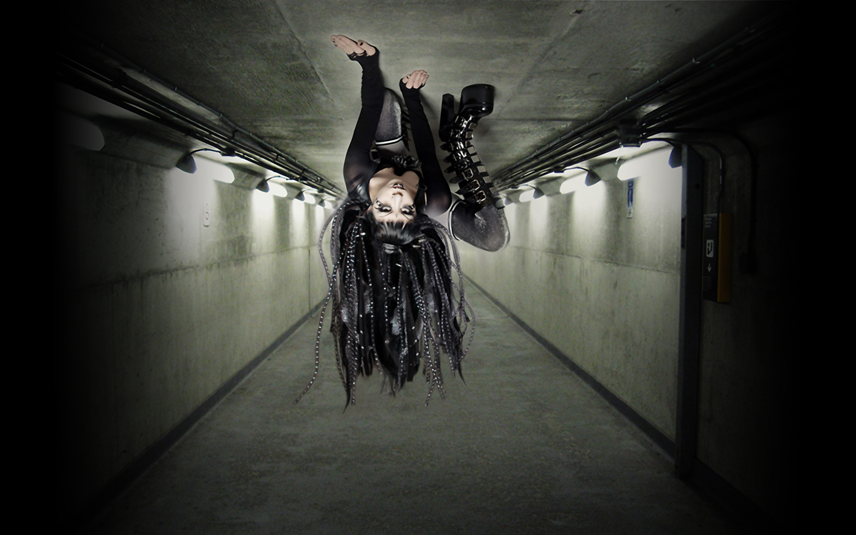Похожие обои на Готичная девушка приклеилась к потолку:
