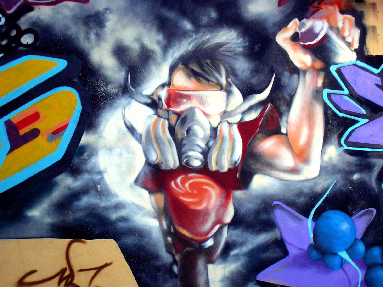 Скачать обои для рабочего стола Граффити парень с респиратором и фото