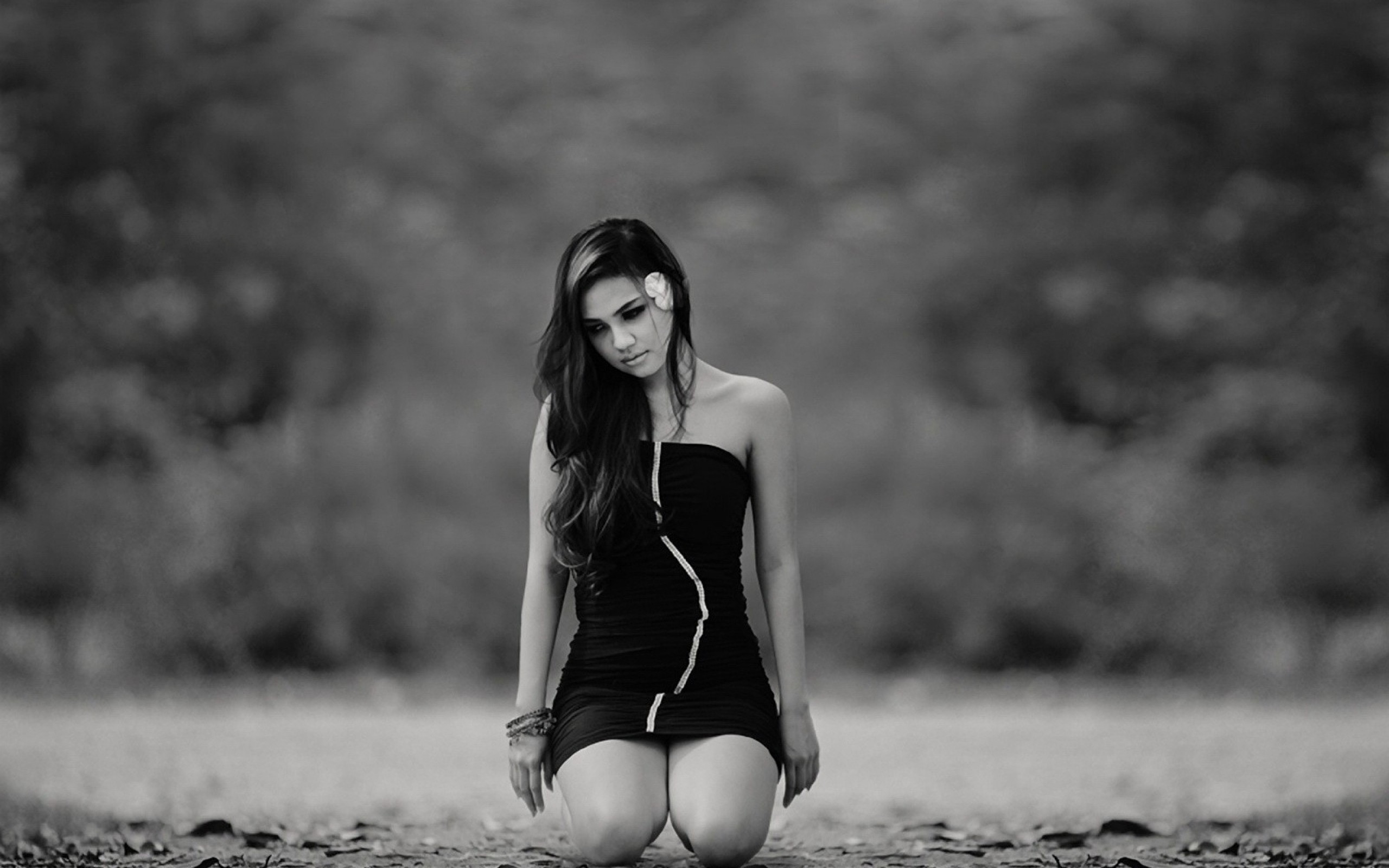 Скачать обои для рабочего стола Грустная красотка стоит на коленях и фото