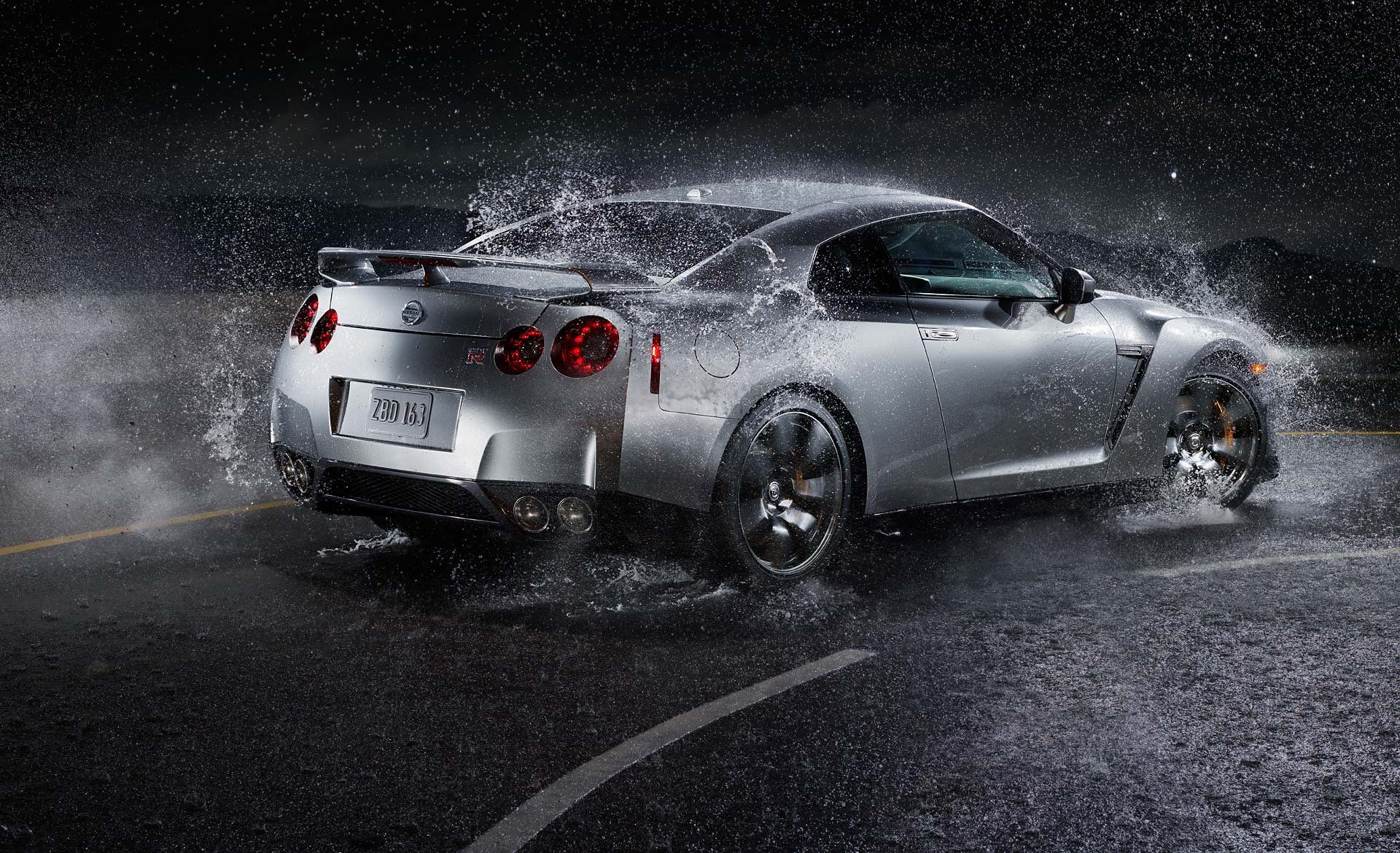 Скачать обои для рабочего стола GT-R весь в воде и фото
