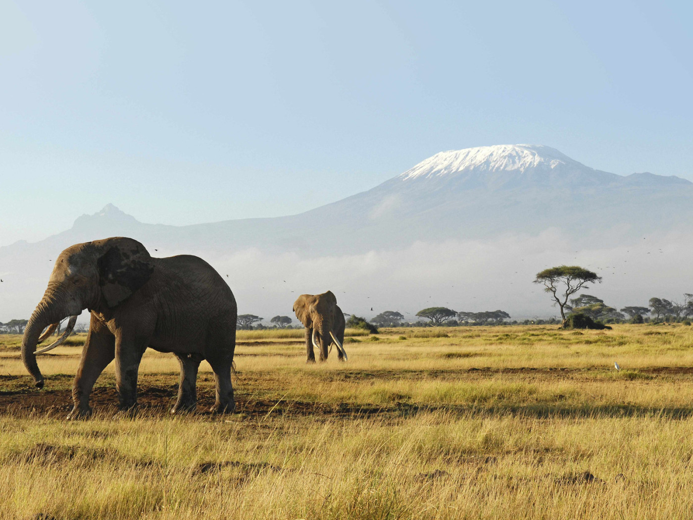 Скачать обои для рабочего стола Гуляющие по саванне слоны и фото
