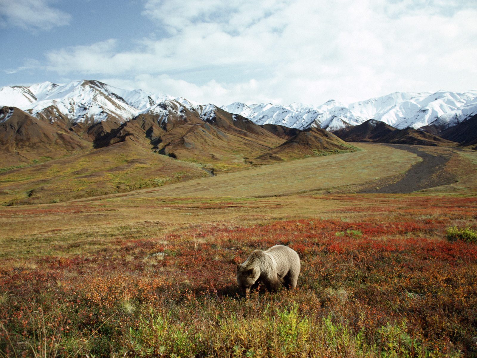 Скачать обои для рабочего стола Гуляющий медведь гризли и фото