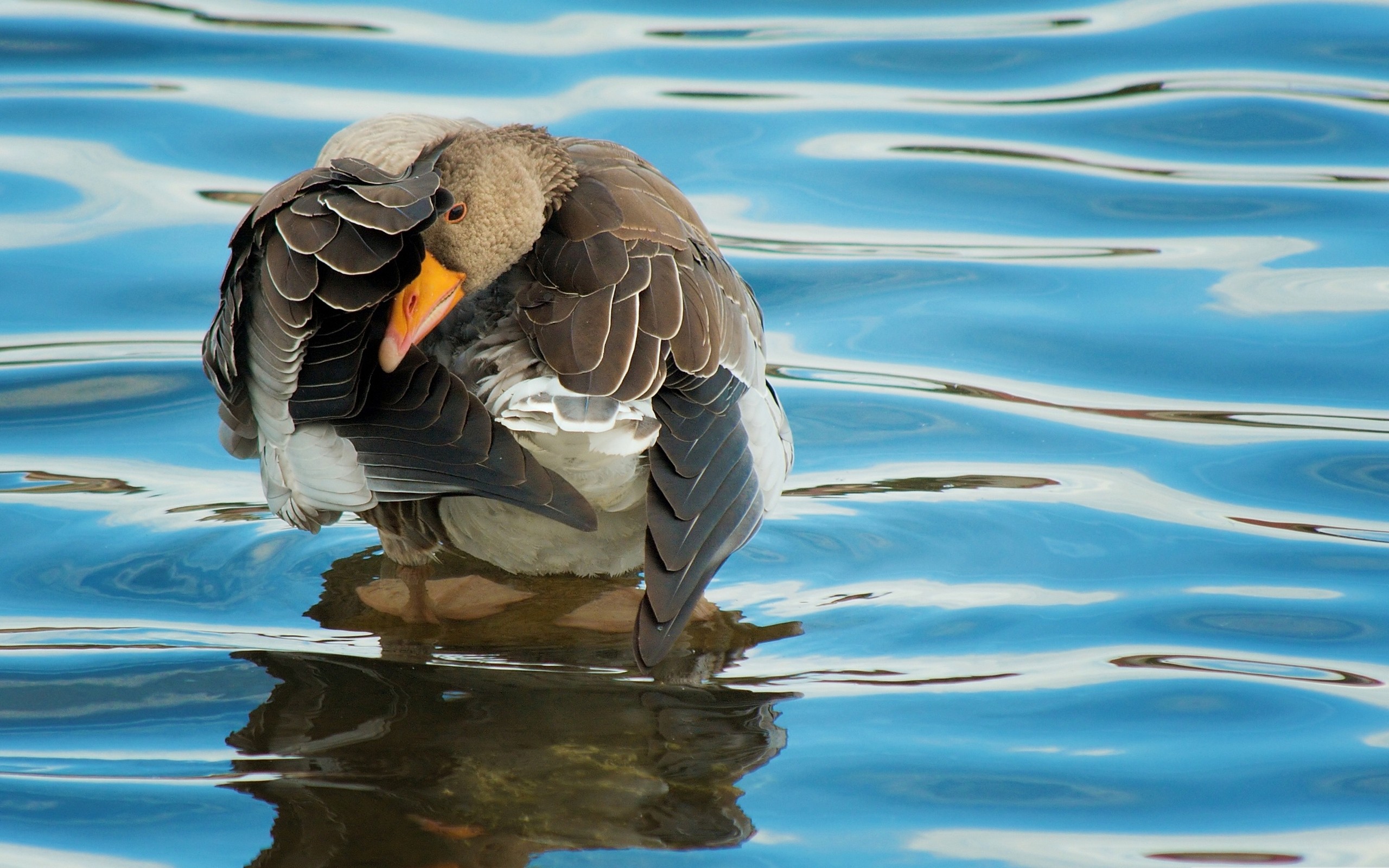 Скачать обои для рабочего стола Гусь в воде голову спрятал и фото