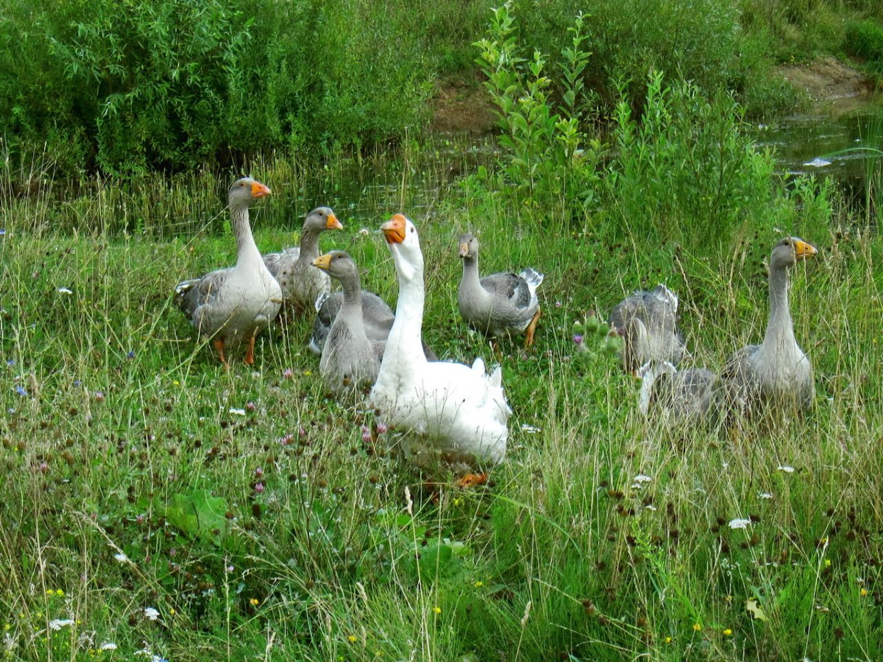 Скачать обои для рабочего стола Гуси на лужайке и фото