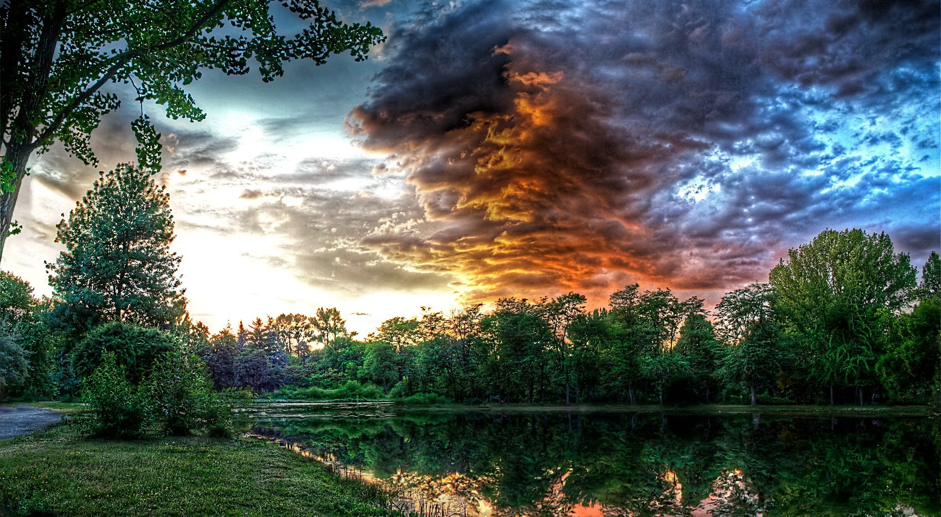 Скачать обои для рабочего стола Густое облако над озером и фото