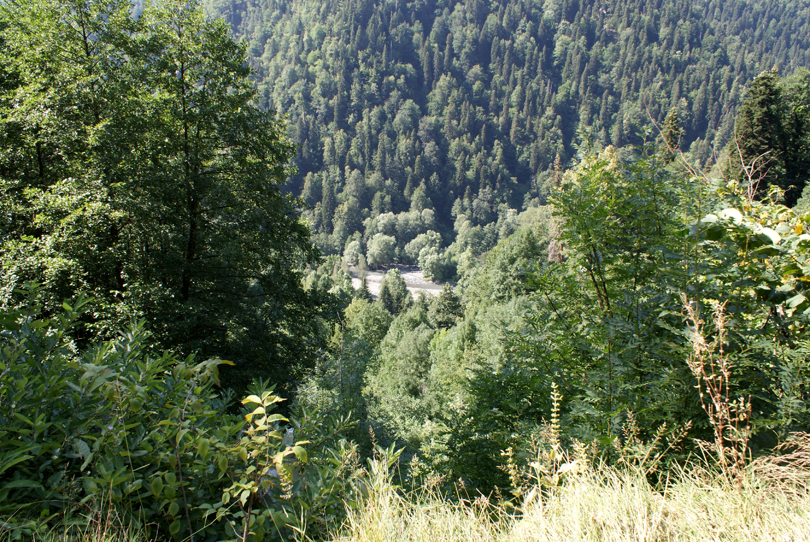 Скачать обои для рабочего стола Густой лес в горах и фото