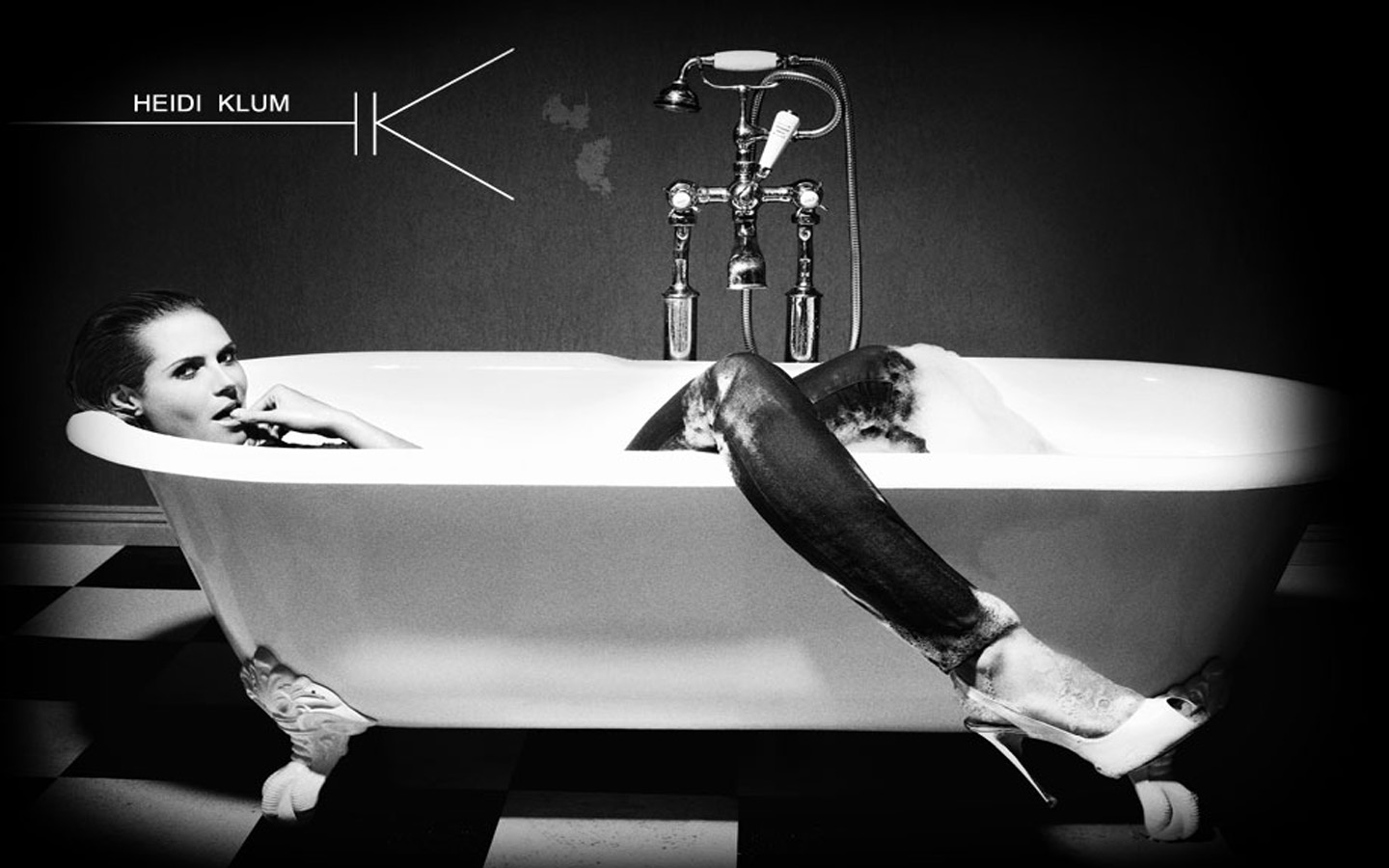 Скачать обои для рабочего стола Heidi Klum - в ванне, но в джинсах и фото