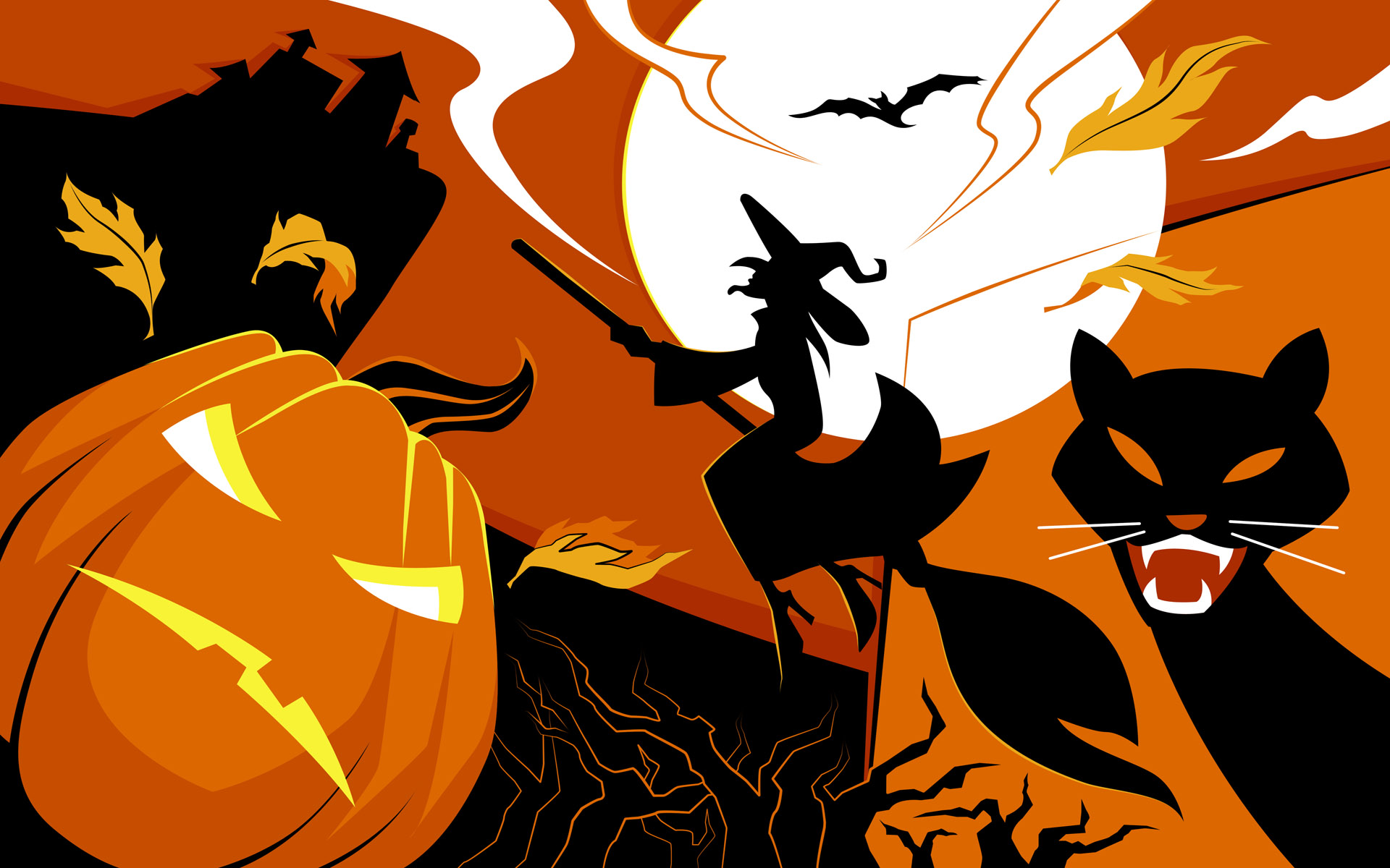 Скачать обои для рабочего стола Хэллоуин в оранжево-черных цветах и фото