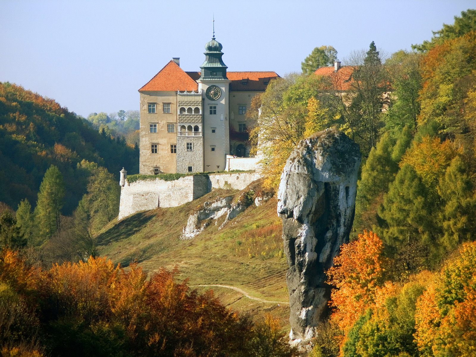 Похожие обои на Hercules Club Rock and Pieskowa Skala Castle, Ojcow National Park, Poland: