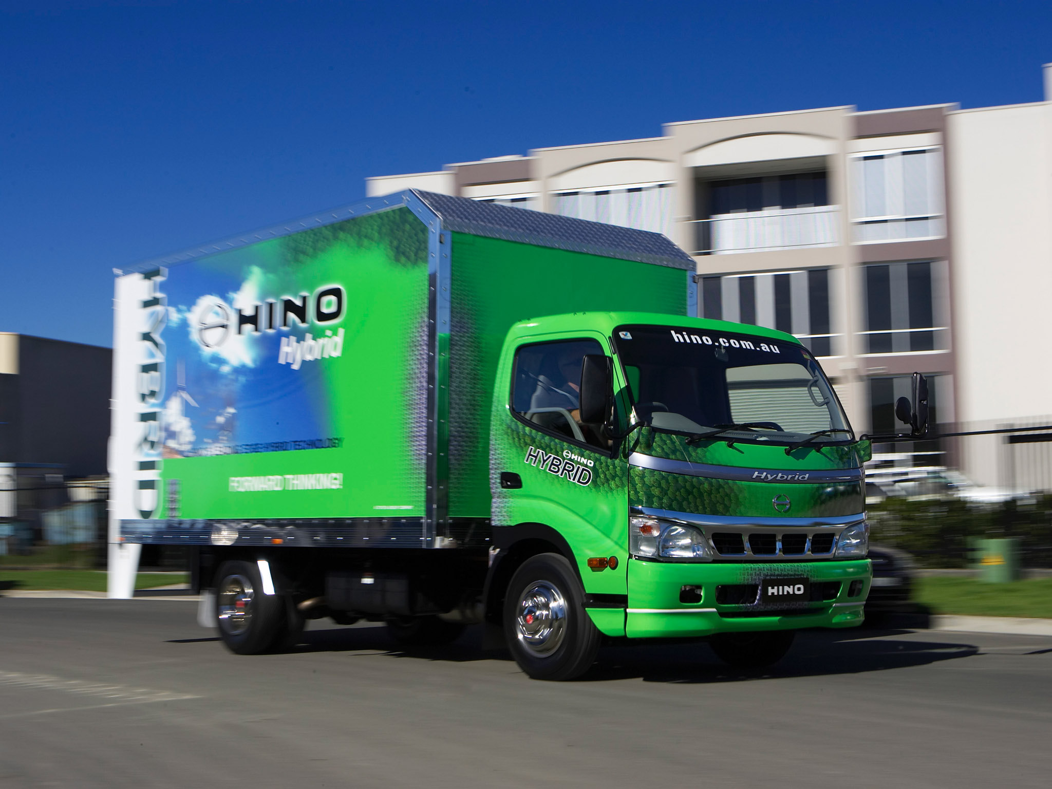 Скачать обои для рабочего стола Hino Dutro Hybrid дорога и фото
