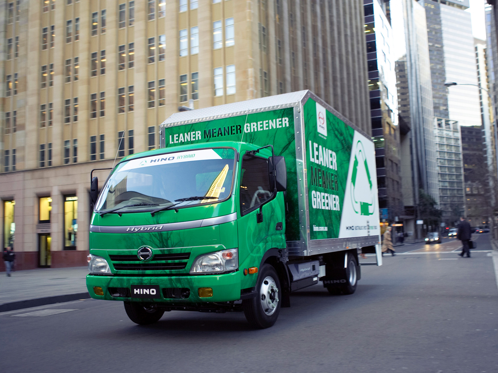 Скачать обои для рабочего стола Hino Dutro Hybrid город и фото