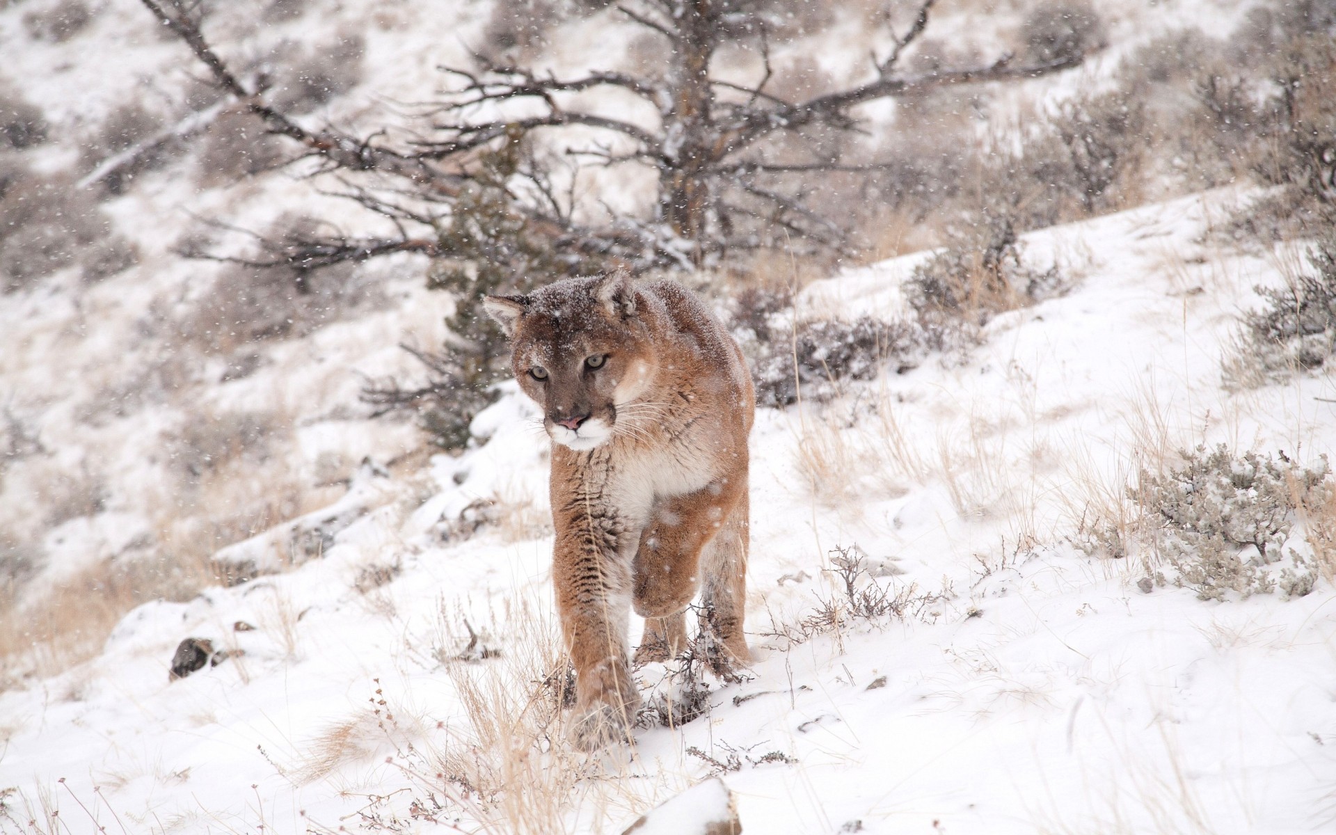 Скачать обои для рабочего стола Хищник идущий по снегу и фото