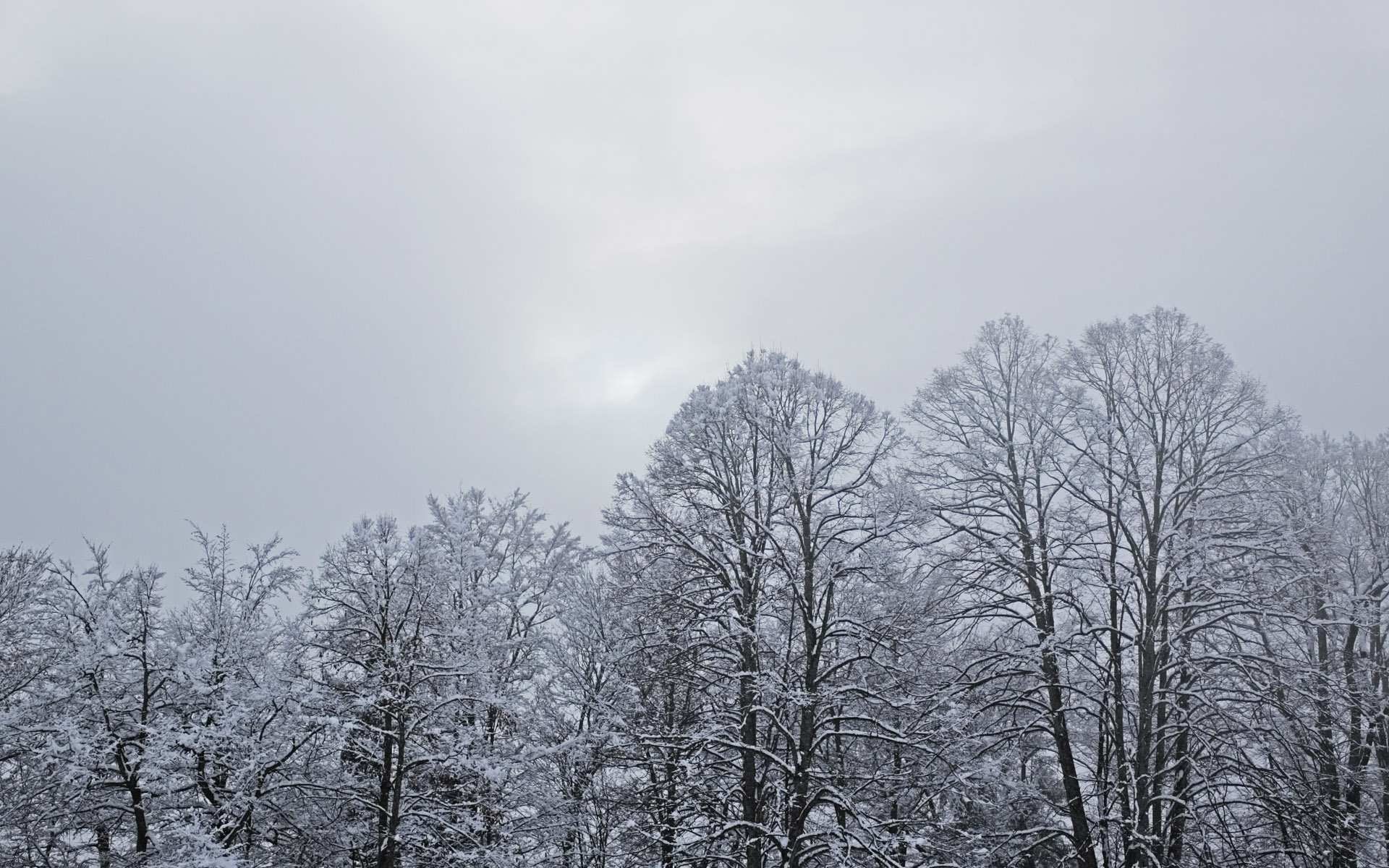 Скачать обои для рабочего стола Хмурое утро в голом лесу и фото