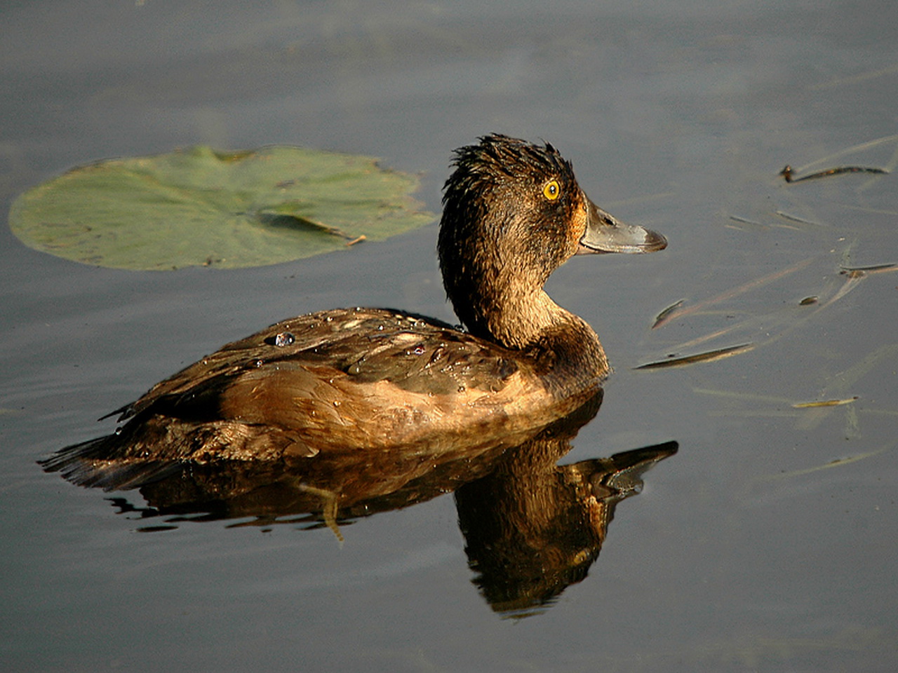 Обои Хохлатая утка-чернеть на воде