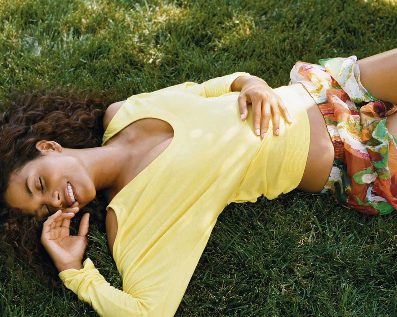 НАВИГАЦИЯ: ОБОИ ДЛЯ РАБОЧЕГО СТОЛА >> ОБОИ Знаменитости >> Обои Холли Бэрри (Halle Berry) на траве