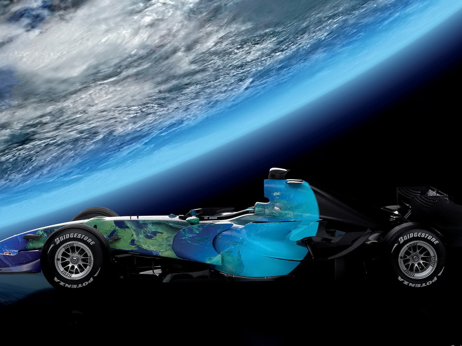 Похожие обои на Honda F1 RA107 вид авто на иллюстрированом фоне с другого ракурса: