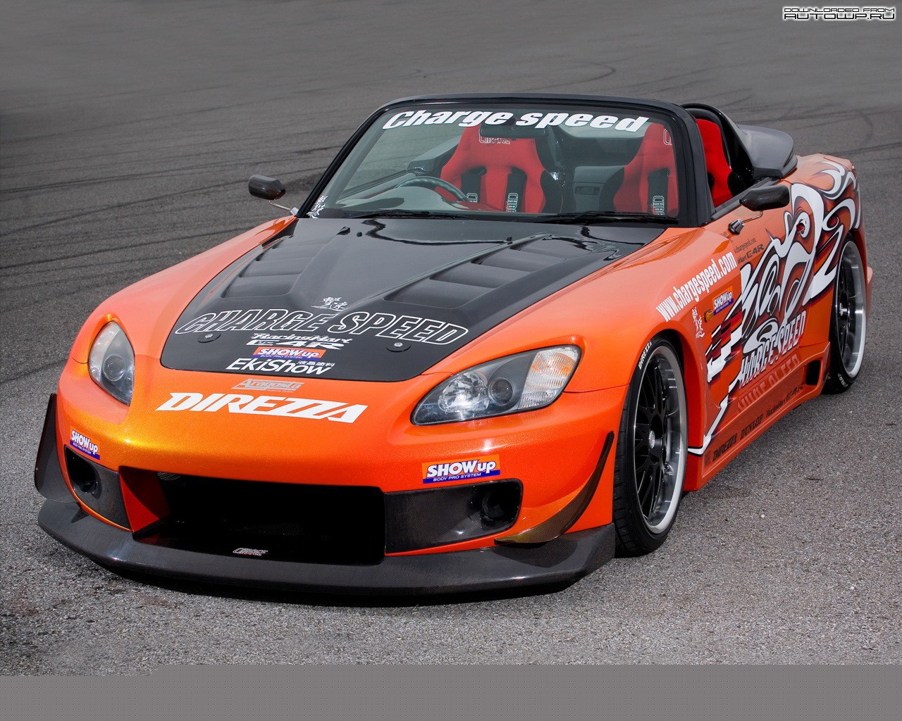Скачать обои для рабочего стола Honda orange coupe и фото