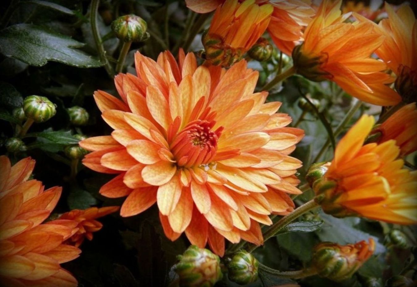 Скачать обои для рабочего стола Хризантемы оранж и фото