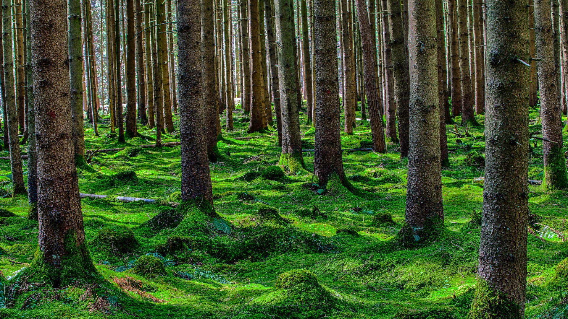 Скачать обои для рабочего стола Хвойный замшелый лес и фото