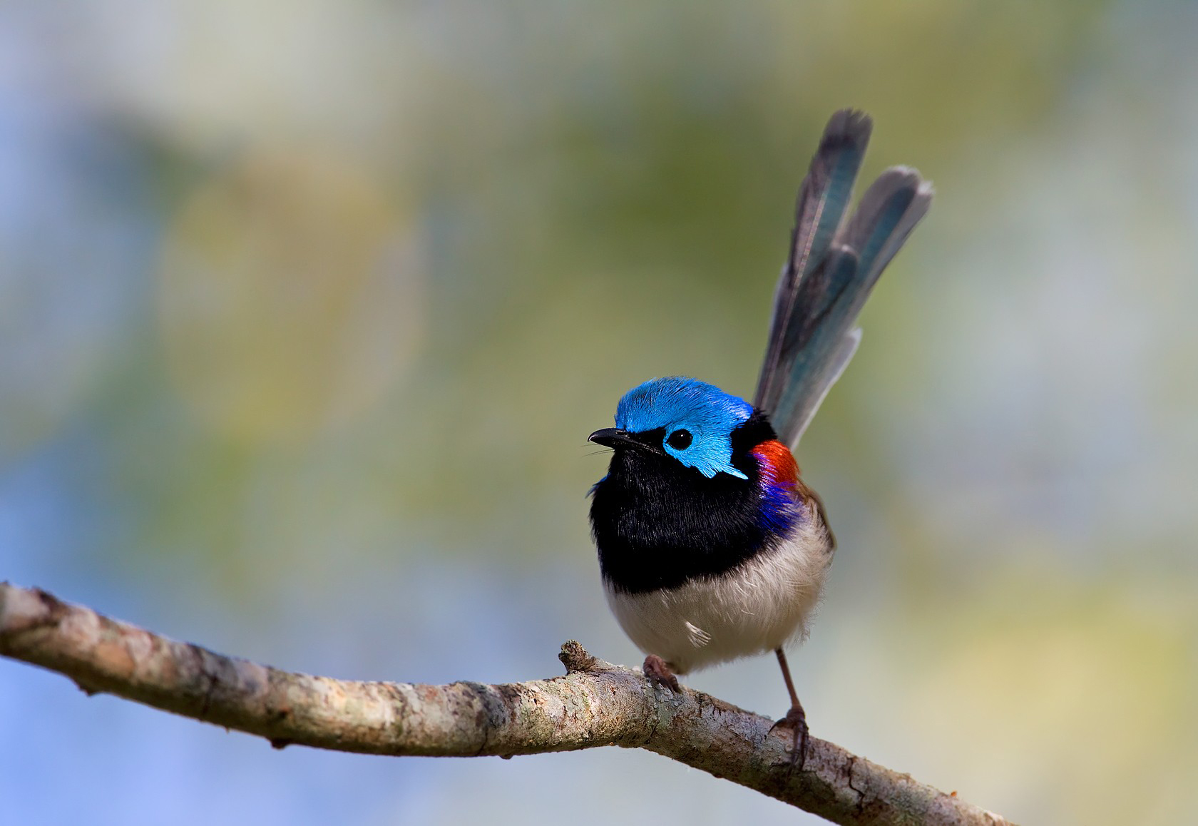Скачать обои для рабочего стола Хвост трубой у птички на ветке и фото
