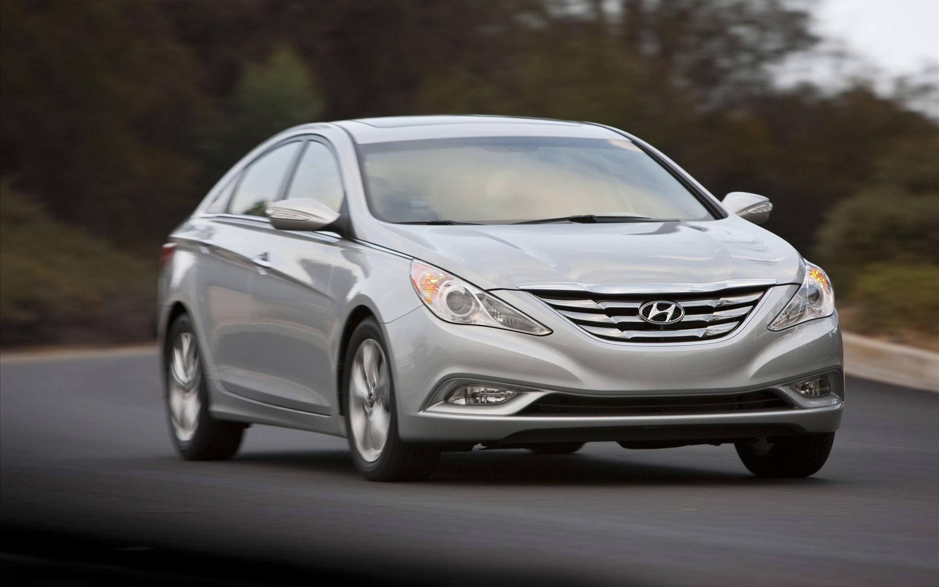 Скачать обои для рабочего стола Hyundai Sonata на дороге и фото