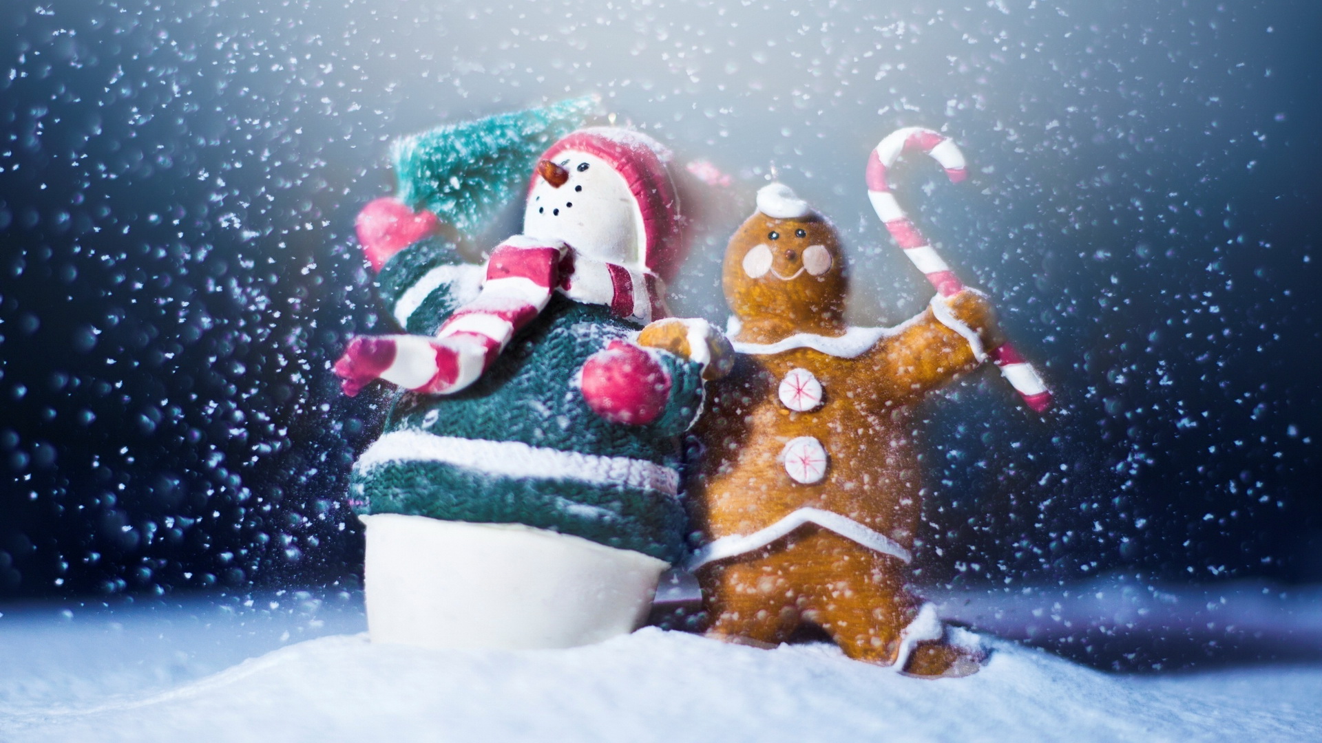 Скачать обои для рабочего стола Игрушечный снеговик с дружком и фото