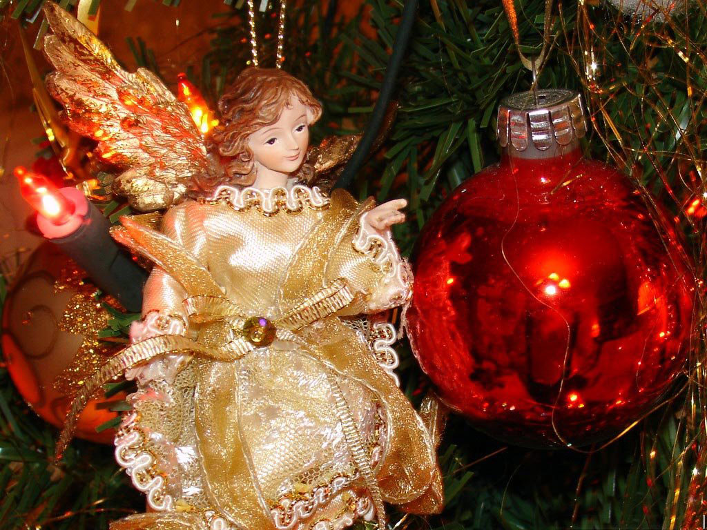 Скачать обои для рабочего стола Игрушка на ёлке, ангел и фото