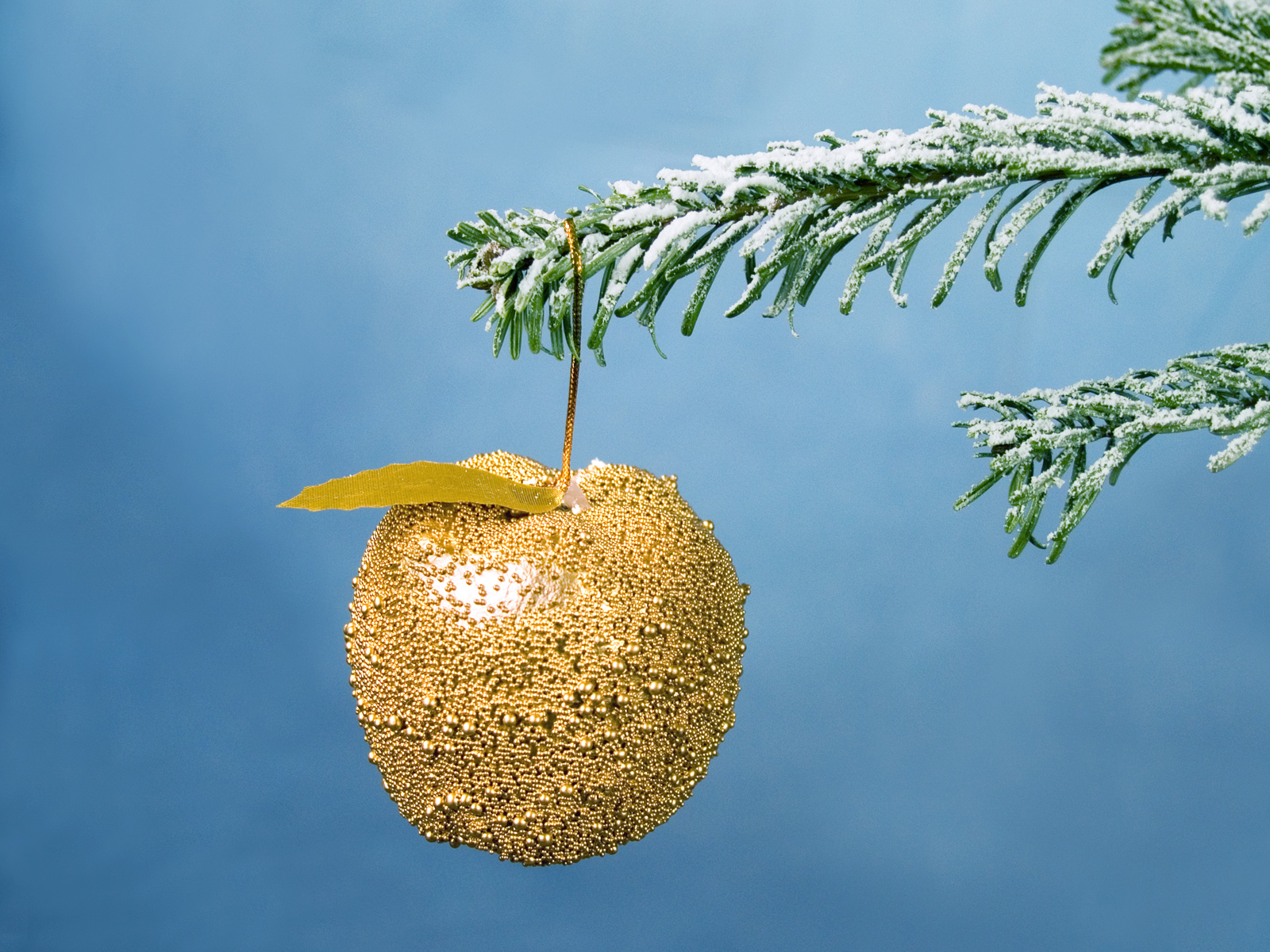 Скачать обои для рабочего стола Игрушка в виде позолоченного яблочка и фото