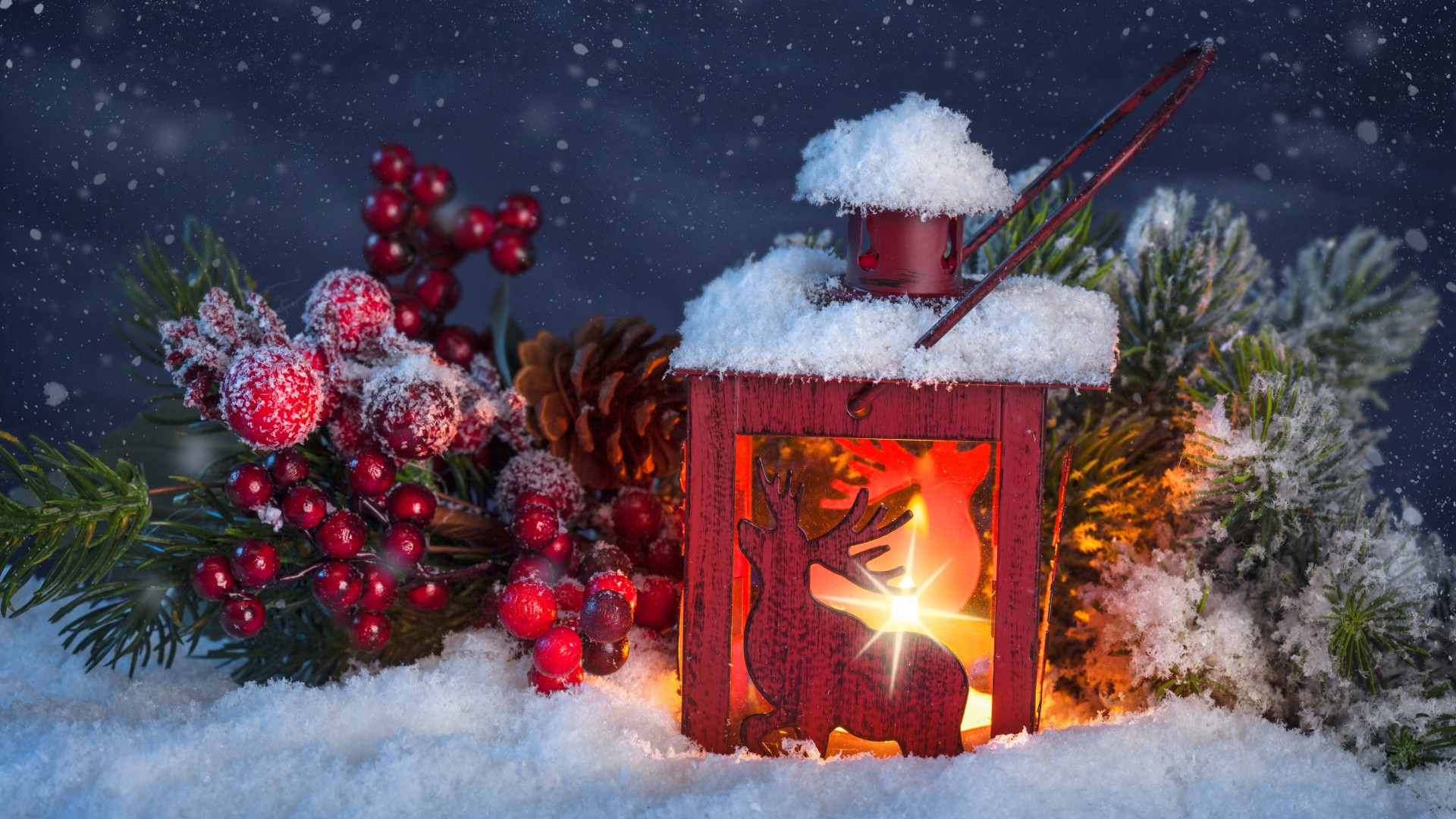 Скачать обои для рабочего стола Игрушки и фонарик под снегом и фото