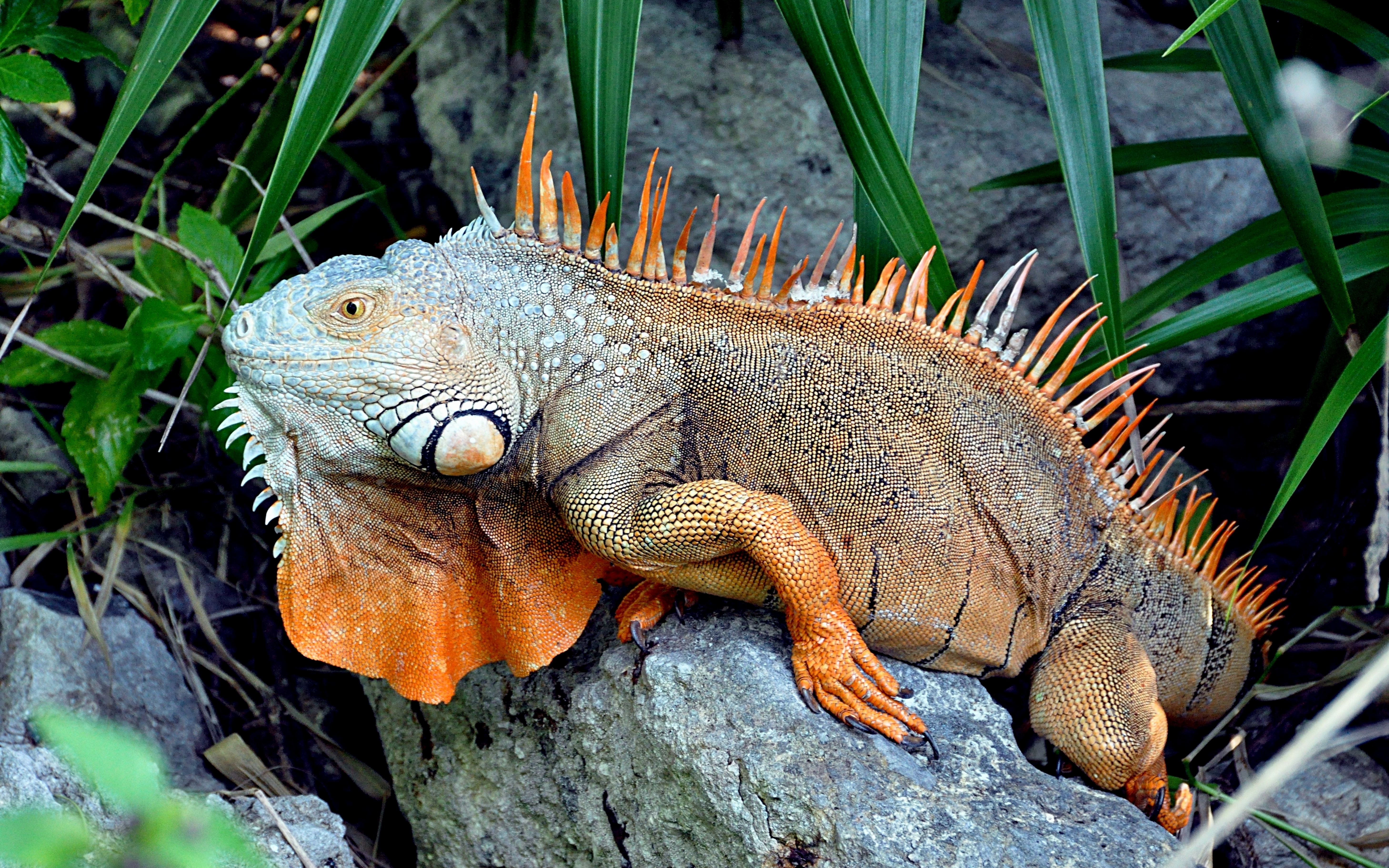 Скачать обои для рабочего стола Игуана сидит на камне и фото