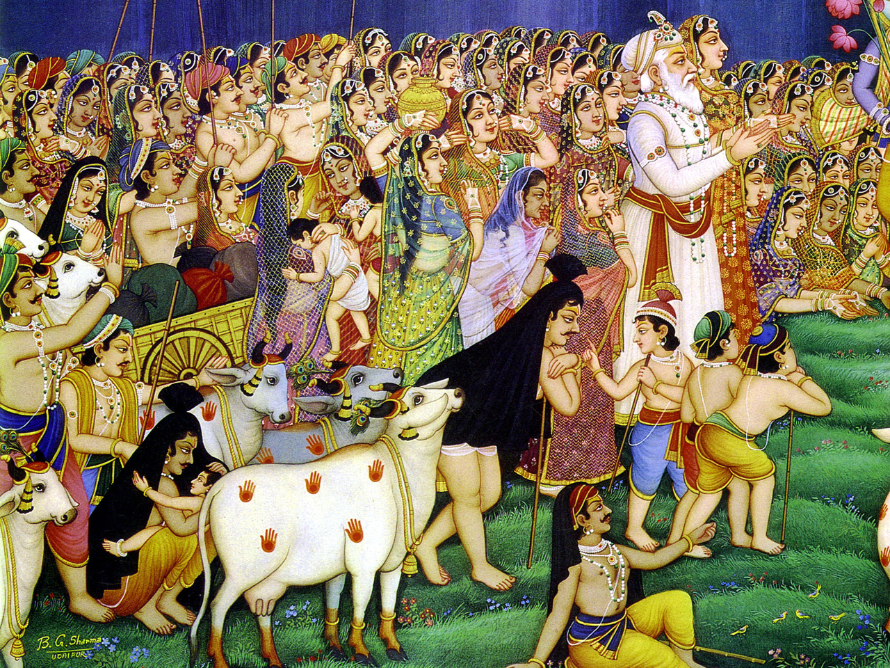 Скачать обои для рабочего стола Индусы с семьями и коровами и фото
