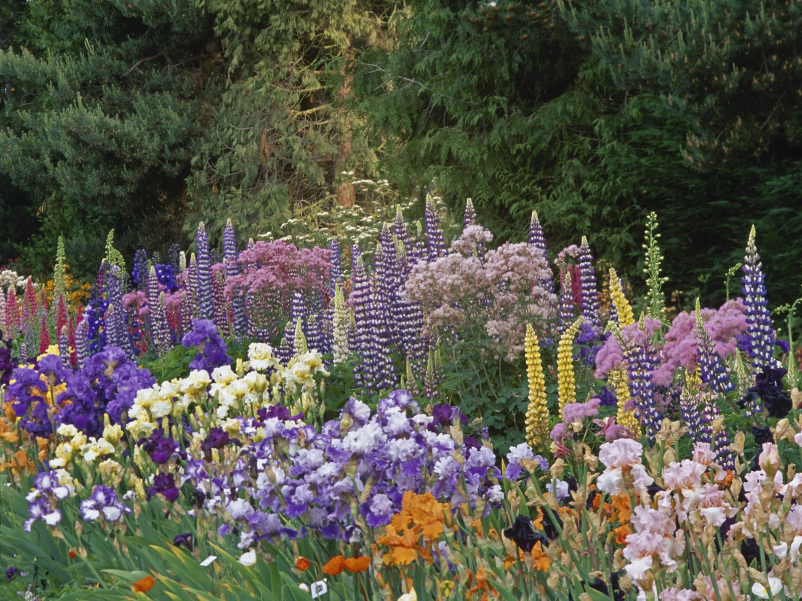 Скачать обои для рабочего стола Iris and Lupine Garden, Salem, Oregon и фото
