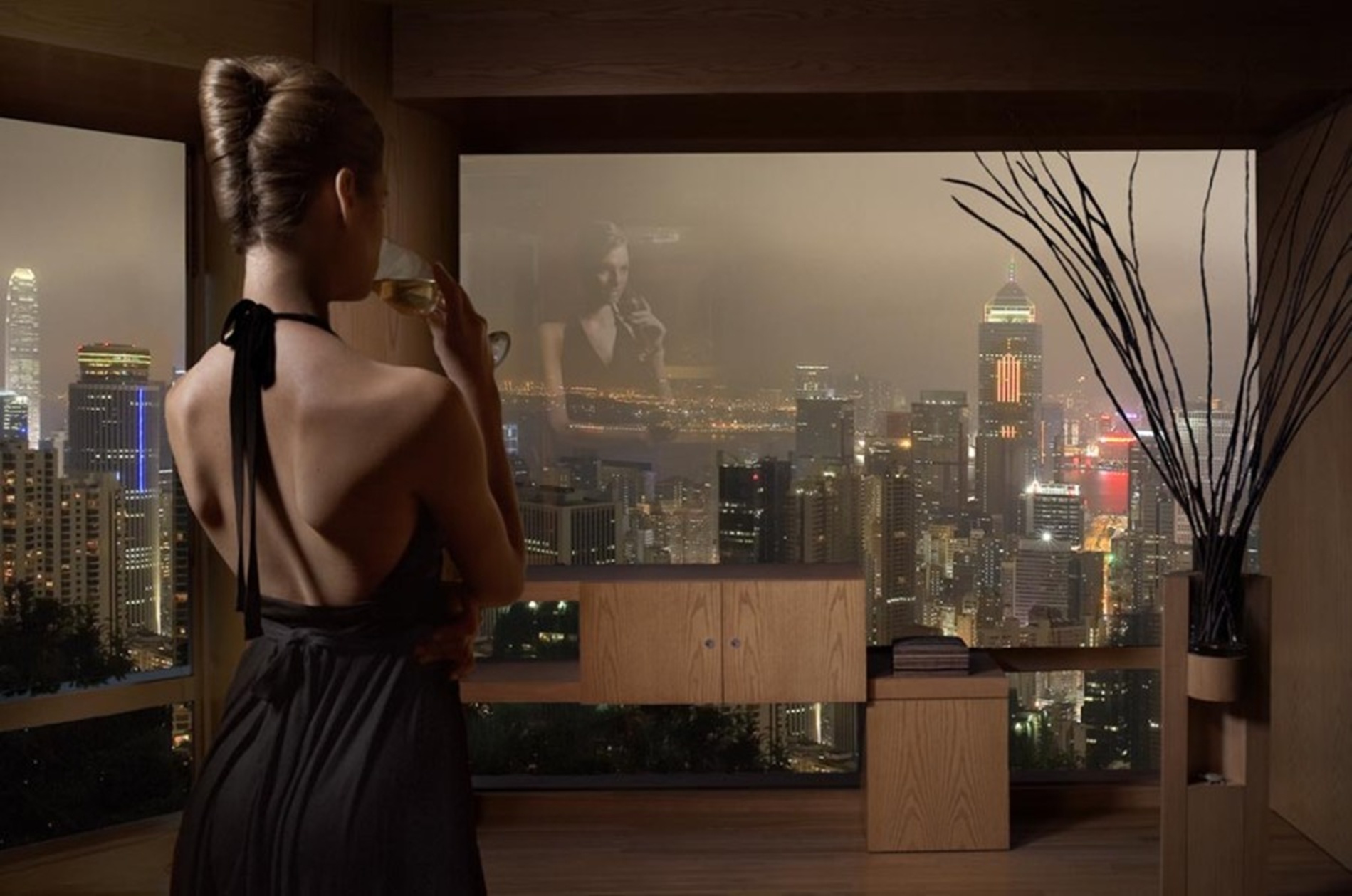 Похожие обои на Из окна смотрит на панораму ночного мегаполлиса: