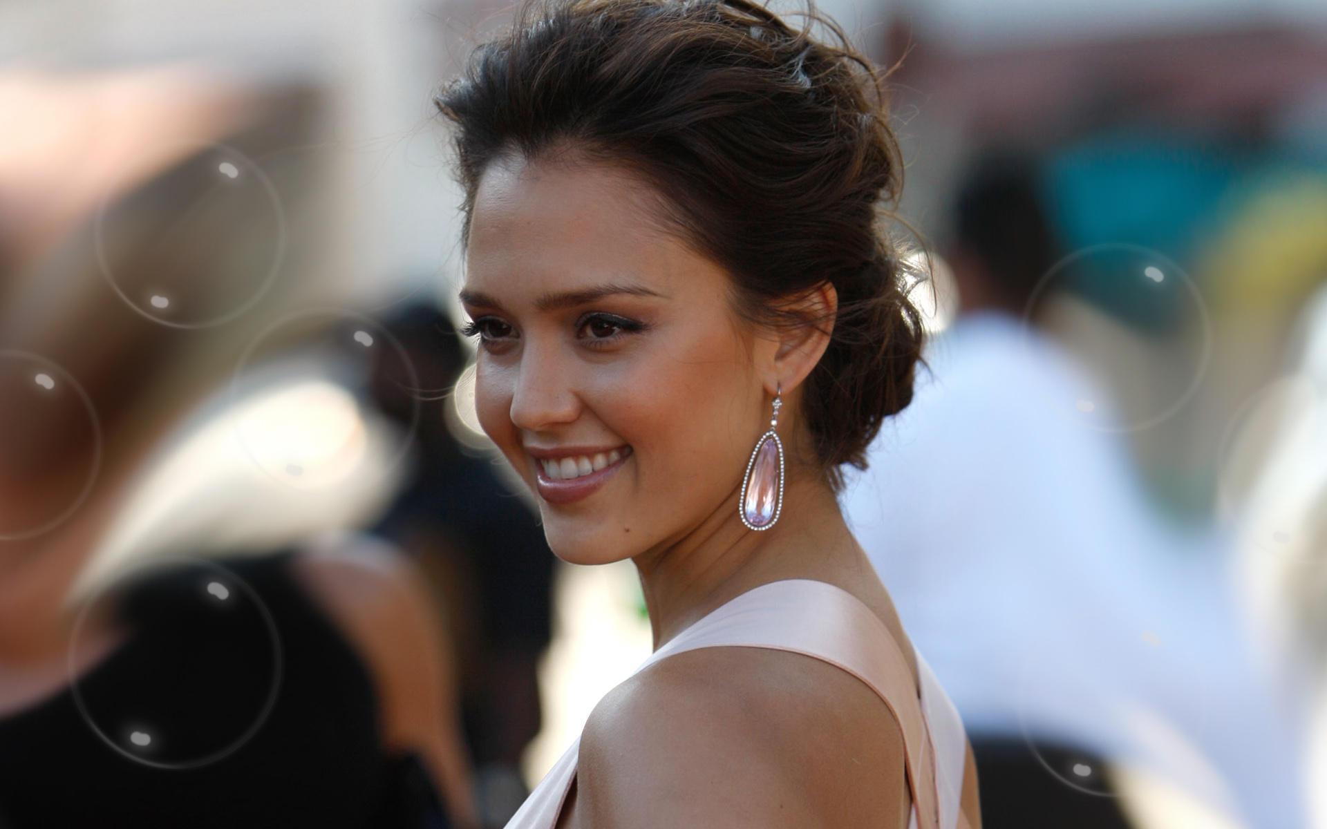 Скачать обои для рабочего стола Jessica Alba полупрофиль и фото