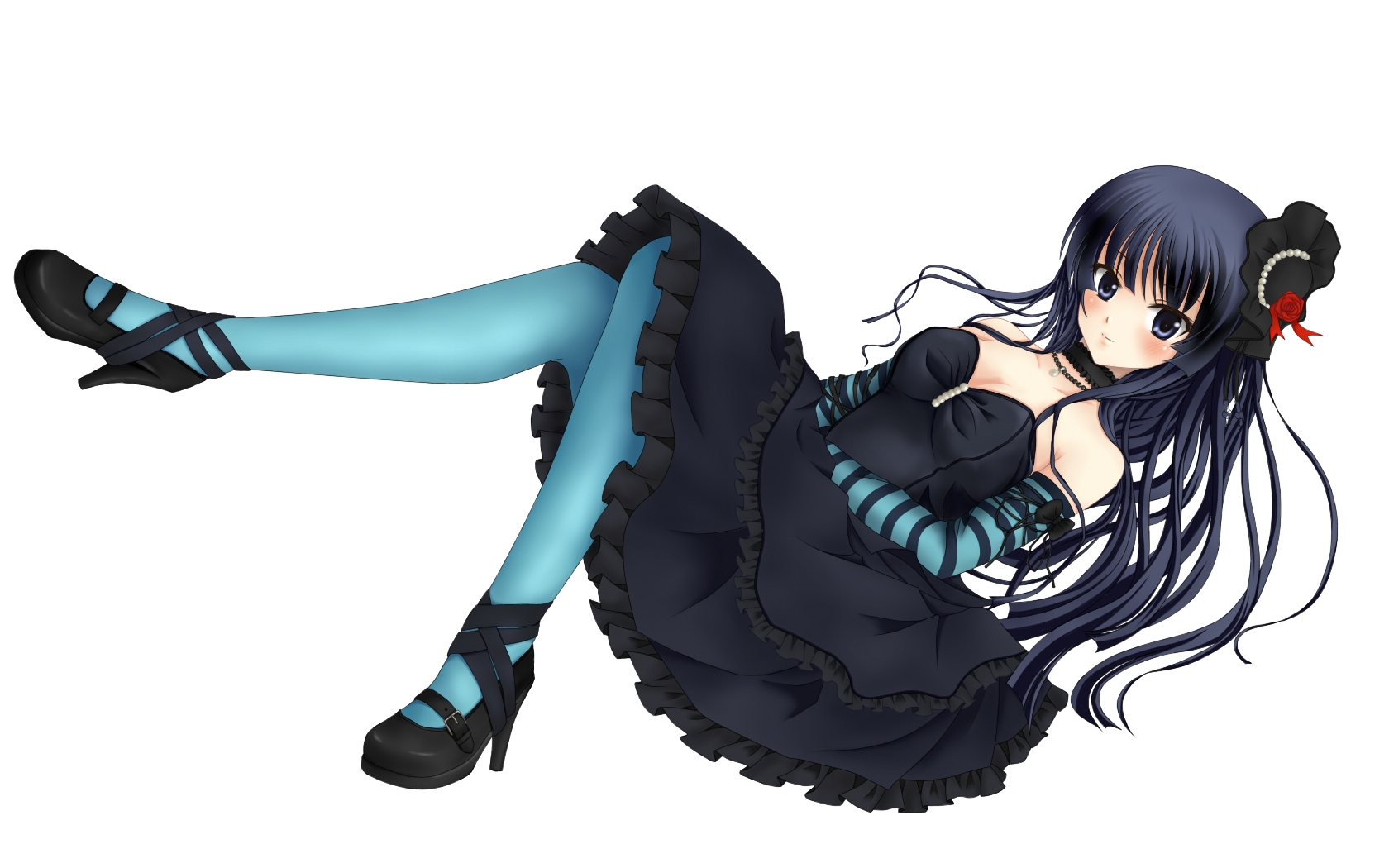 Скачать обои для рабочего стола K-On! - Акиями Мио в черном платье на белом фоне и фото