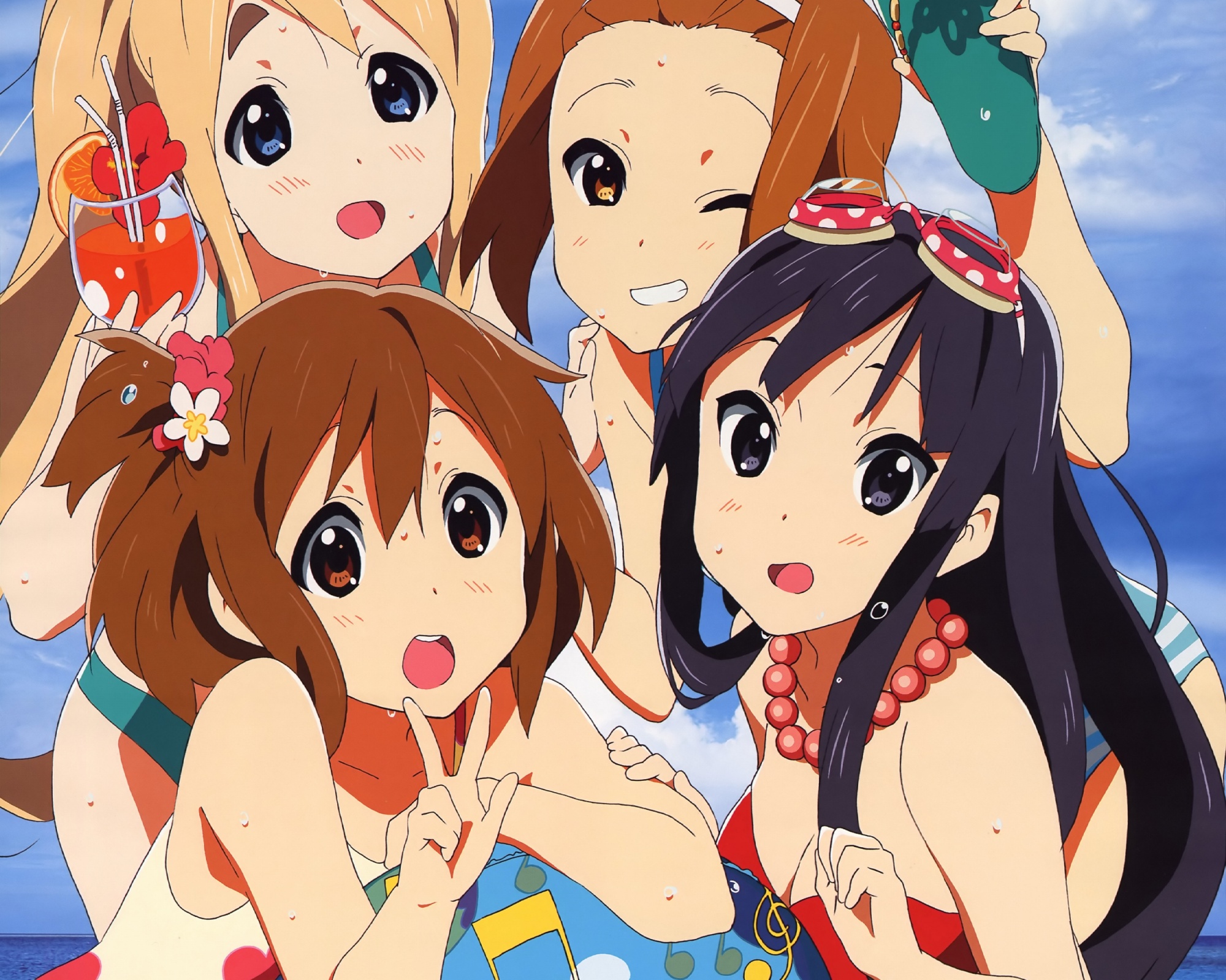 Скачать обои для рабочего стола K-On! - Четверо на пляже и фото